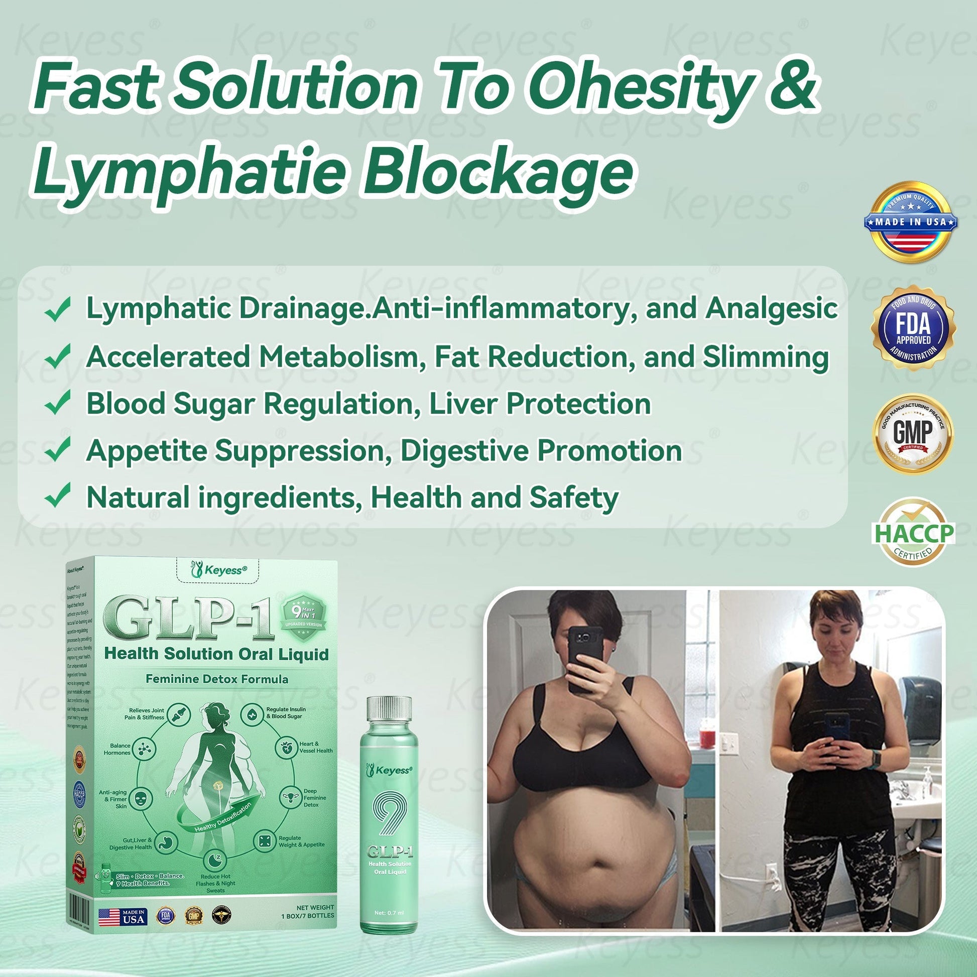 ย Safe & Effective: Made with natural ingredients and a science-backed formula, our oral liquid is FDA- and GMP-certified for quality and safety. It supports metabolism, blood sugar balance, appetite control, and healthy fat loss, promoting overall vitality.